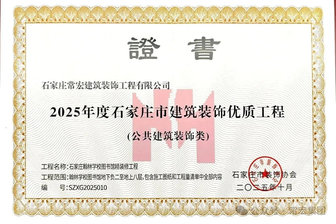 此次获奖,是行业专家对常宏在教育空间施工领域专业能力与匠心精神的又一次肯定,凸显了常宏在细分市场打造精品工程的强大实力。